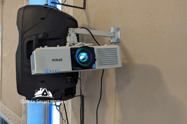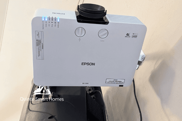 Selby United Church had a projector screen already. However, a common challenge with projector screens is when the clarity of the displayed visuals is reduced or washed out from excessive light. The church is hugged by ten expansive 10-foot stained-glass windows welcoming natural sunlight into the building.