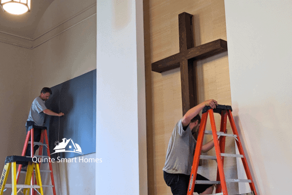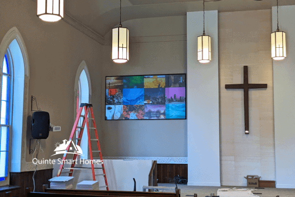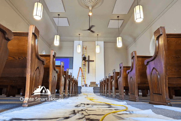 This spring, Selby United Church contacted us to enhance its audiovisual system and altar, focusing on upgrading its visuals and projector screen for seamless video presentations and facilitating hymn-following by guests. They were also working with S & J General Contracting to modernize the interior design upgrades, including the ceiling, the flooring and walls.
